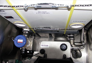 Grundsätzlich sind alle auf dem Markt angebotenen mikrobiologisch arbeitenden Systeme einsetzbar. Auf Kundenwunsch wird derzeit in unserer Kabine das Microphor®-System verwendet. Es gibt jedoch auch andere Hersteller, mit denen wir zusammenarbeiten. Alle handelsüblichen Systeme sind an unterschiedliche klimatische Bedingungen anpassbar. Das Microphor®-System funktioniert ohne elektrischen Strom, verbraucht weniger als einen Liter Wasser pro Spülvorgang und die mikrobiologischen „Helfer" sind stets auch schon an Bord.